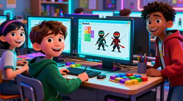 לימודי סקראץ' בעברית. התוכנה מאפשרת בניית קוד מבלוקים, ממש כמו לגו. התלמידים יכולים לא רק לשלוט במושגי התכנות הבסיסיים ולשפר את יכולת החשיבה שלהם, אלא גם להבין טוב יותר דיסציפלינות שונות באמצעות כלי הלמידה של Scratch.