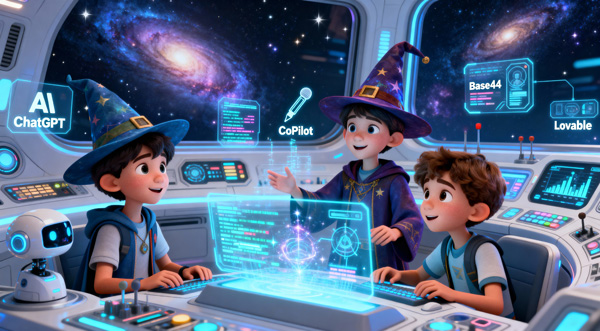 ומה אנחנו עשינו? פיתחנו קורסים כיפים ומגניבים בהם ילדים לומדים ליצור תכנים שונים בעזרת כלי בינה מלאכותית, כמו CoPilot, ChatGPT, Base44, Lovable ועוד.